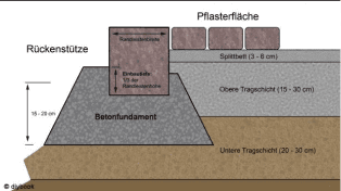 Pflasterflächen benötigen immer eine Randeinfassung, die aus Borden oder Randsteinen bestehen kann. Diese sollten in Beton eingesetzt und mindestens zu einem Drittel ihrer Höhe unterhalb des Pflasterniveaus eingebunden werden. Für Flächen, die von Fahrzeugen befahren werden, sollten besonders stabile Einfassungen gewählt werden, wie z. B. Winkelbordstützen oder L-Steine.