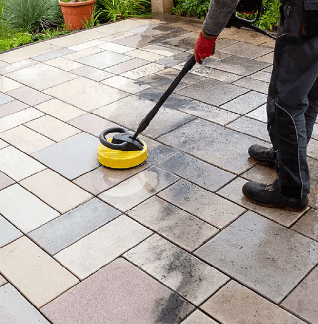 Wie reinigt man Pflasterflächen?