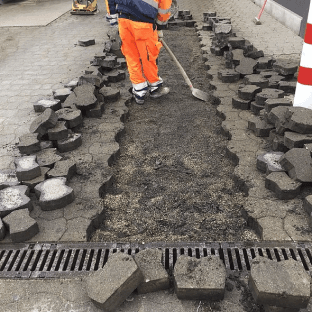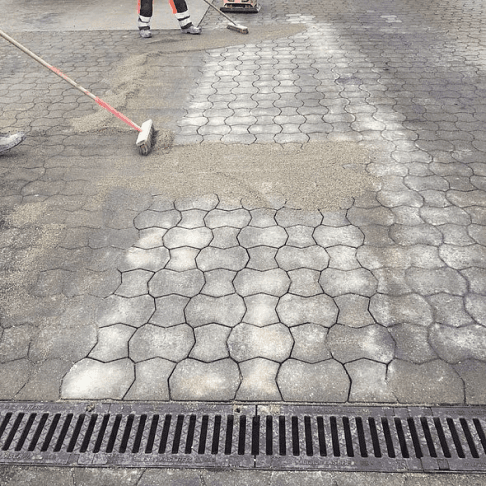 Im Alltag wird die Pflege von Pflasterflächen oft vernachlässigt. Bilden sich Spurrillen und Verdrückungen, kann Wasser stehen bleiben. Pfützen auf der Fläche sind nicht nur unangenehm, sondern verstärken auch die schädigenden Einflüsse.